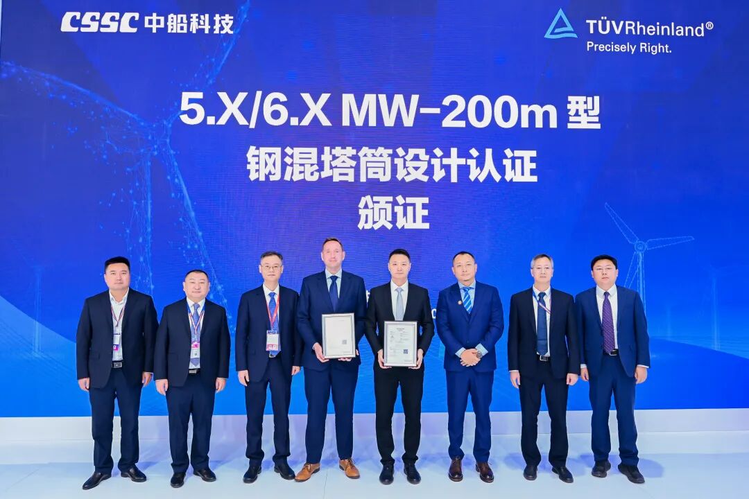 ? 为中船科技颁发5.X/6.X MW-200m型钢混塔筒设计认证证书;